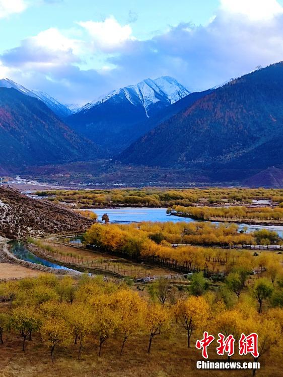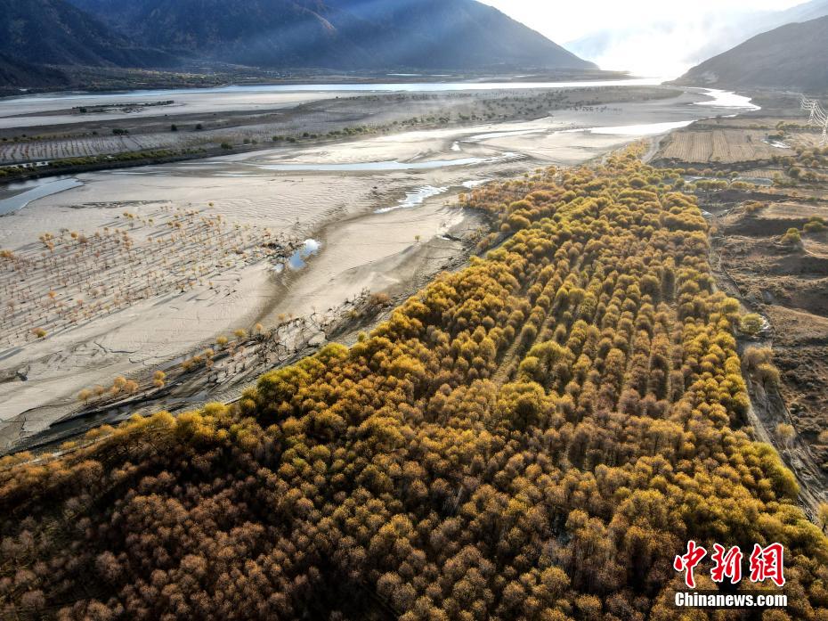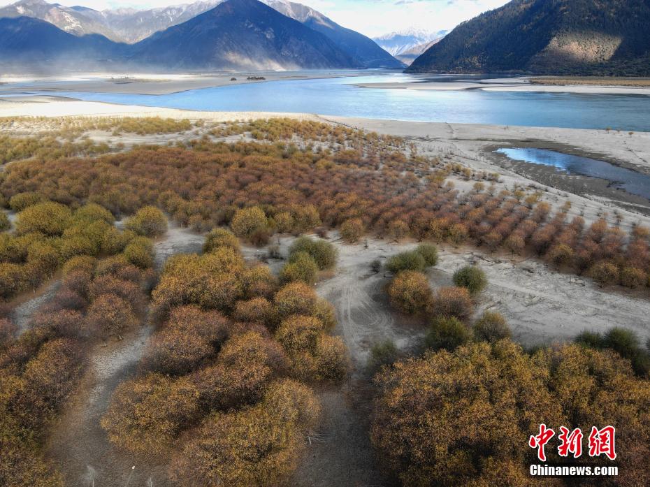 雅魯藏布江位于西藏自治區(qū)境內(nèi),是世界海拔最高的大河之一。近日,記者途徑雅魯藏布江看到,深秋時(shí)節(jié),兩岸的柳樹林變得金黃一片,峽谷間秋色宜人,美如畫卷。值得一提的是,在秋冬兩季的日落時(shí)分,傳說中“十人九不遇”的南迦巴瓦峰變得相對容易看到“日落金山”的景象,十分壯觀。江飛波 攝