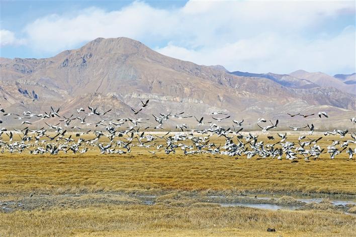 43歲的藏族女巡護(hù)員格桑卓瑪,指著不遠(yuǎn)處說(shuō)起了變化:“以前鳥(niǎo)很怕人,數(shù)量也不多,現(xiàn)在,鳥(niǎo)不怕人,以地里青稞穗為食,都到這里來(lái)越冬?!?/p>
