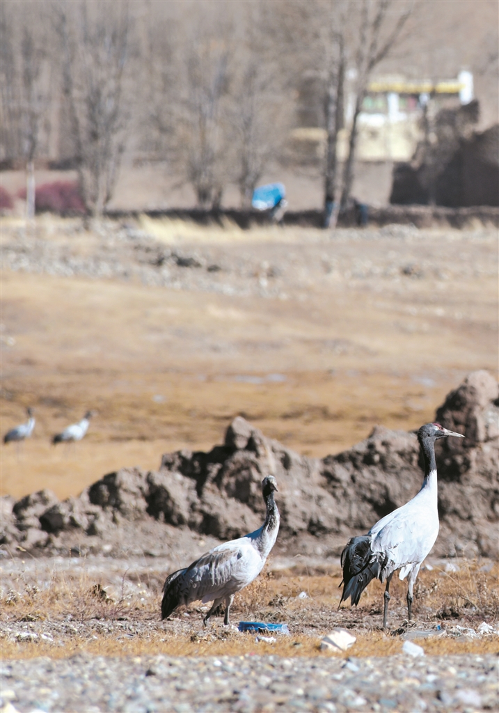 黑頸鶴集聚拉薩林周縣