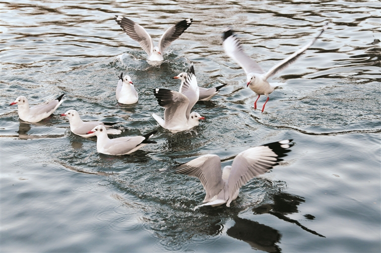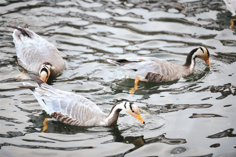 宗角祿康公園里的候鳥正在覓食。(本版圖片由拉薩融媒視覺組攝)