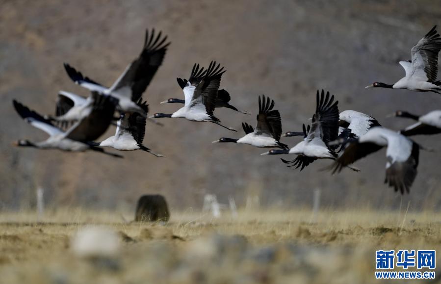 黑頸鶴集聚拉薩林周縣