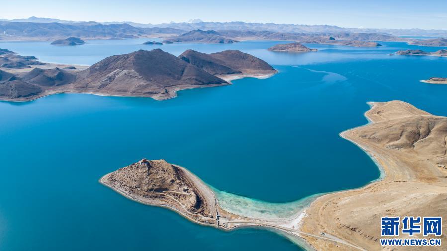 這是1月10日拍攝的羊卓雍錯景色(無人機(jī)照片)。新華社記者 孫非 攝