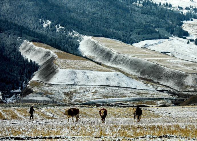 近日,位于祁連山腹地的青海省海北藏族自治州祁連縣被白雪覆蓋,“天境祁連”靜謐巍峨。航拍鏡頭下的雪山、草原、森林、村莊……每一處都是美景。[詳細] -