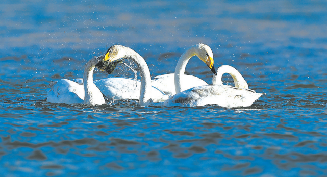 今冬,在海東市化隆回族自治縣群科鎮(zhèn)安達其哈村的黃河水面上,數(shù)百只大天鵝悠然覓食、棲息,美麗的大天鵝和清澈的黃河水勾勒出一幅美麗的冬日畫卷。