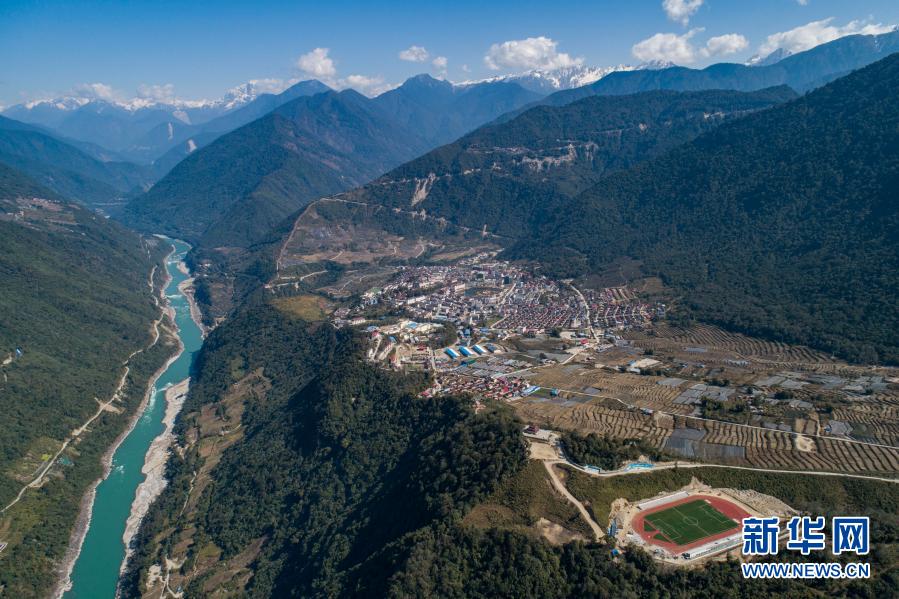 這是墨脫縣城,左側(cè)河流為雅魯藏布江(2月13日攝,無(wú)人機(jī)照片)。新華社記者 孫非 攝