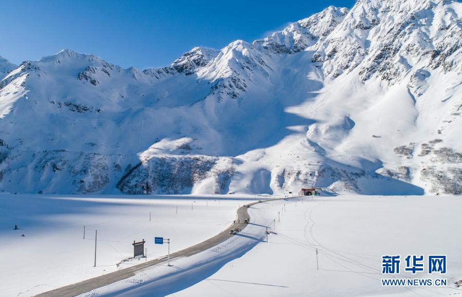 雪后的墨脫公路嘎隆拉隧道入口(2月8日攝,無(wú)人機(jī)照片)。新華社記者 孫非 攝