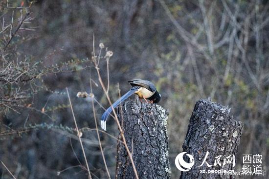 珠峰保護區(qū)內(nèi)的黃嘴藍鵲 北京林業(yè)大學(xué)學(xué)生鐘華 攝