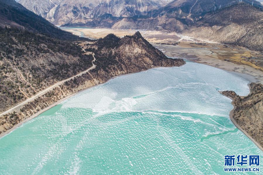這是2月16日拍攝的然烏湖(無(wú)人機(jī)照片)。新華社記者 孫非 攝