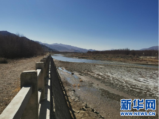 圖為隆子河,兩岸是人工種植的沙棘林,河灘上還能看到泛白的鹽堿地,沙灘已經(jīng)不復(fù)存在(2月27日攝)。新華網(wǎng) 殷小燕 攝