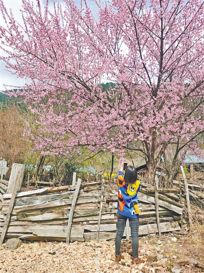 游客在林芝市波密縣易貢鄉(xiāng)拍攝桃花。王珊 張猛 攝