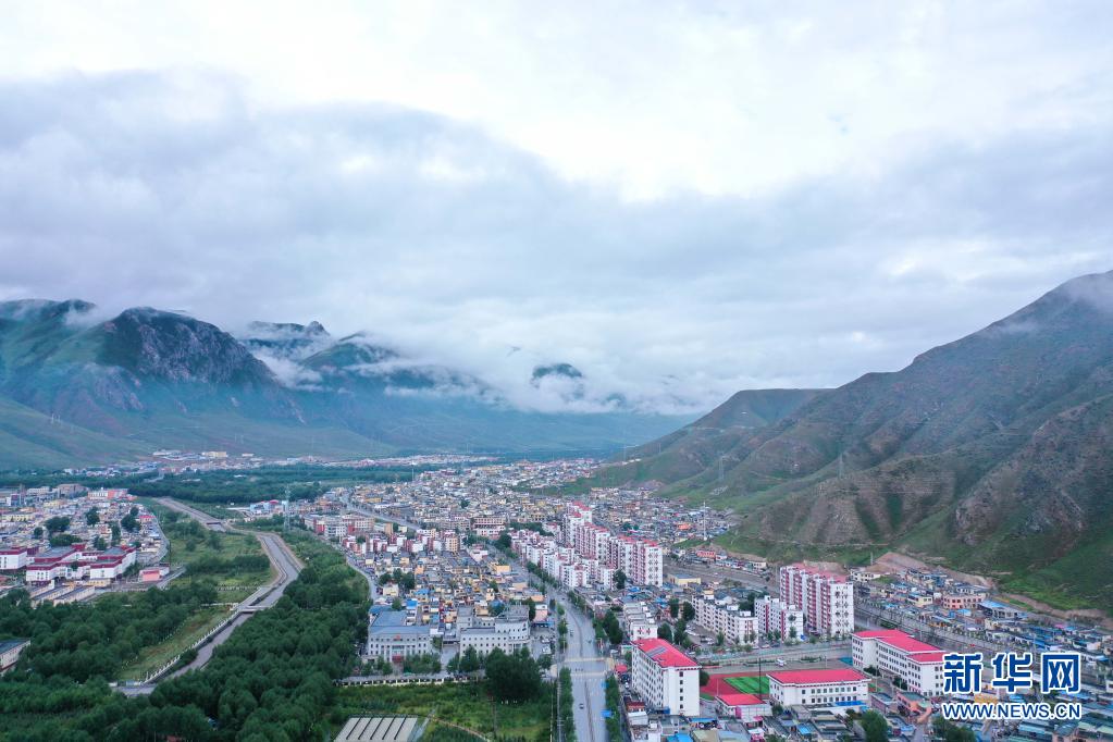 這是8月7日拍攝的玉樹市城區(qū)(無(wú)人機(jī)照片)。新華社記者 吳剛 攝