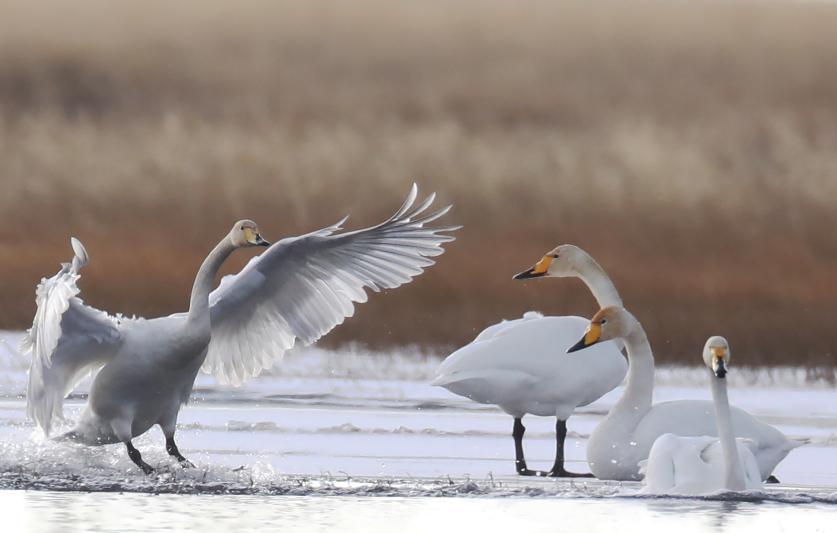 連日來,成群的野生大天鵝陸續(xù)飛臨四川省阿壩州若爾蓋縣高原小鎮(zhèn)麥溪鄉(xiāng)的洛賈瓊果河棲息越冬。[詳細(xì)]