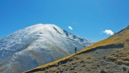 10月23日早晨,姜楠備好望遠鏡、相機、水,準(zhǔn)備上山,同行的還有藏族同事扎拉和一位藏族牧民,任務(wù)是為云塔村3座小山上的紅外相機更換電池。這里的山并不高,但因高原氧氣稀薄,增添攀登難度。山間未完全融化的雪跡,也讓山路濕滑難走。