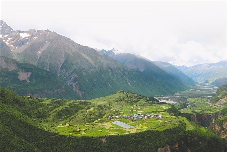 圖為7月11日遠眺邊壩縣金嶺鄉(xiāng),滿目綠色、植被繁茂。記者 桑鄧旺姆 攝