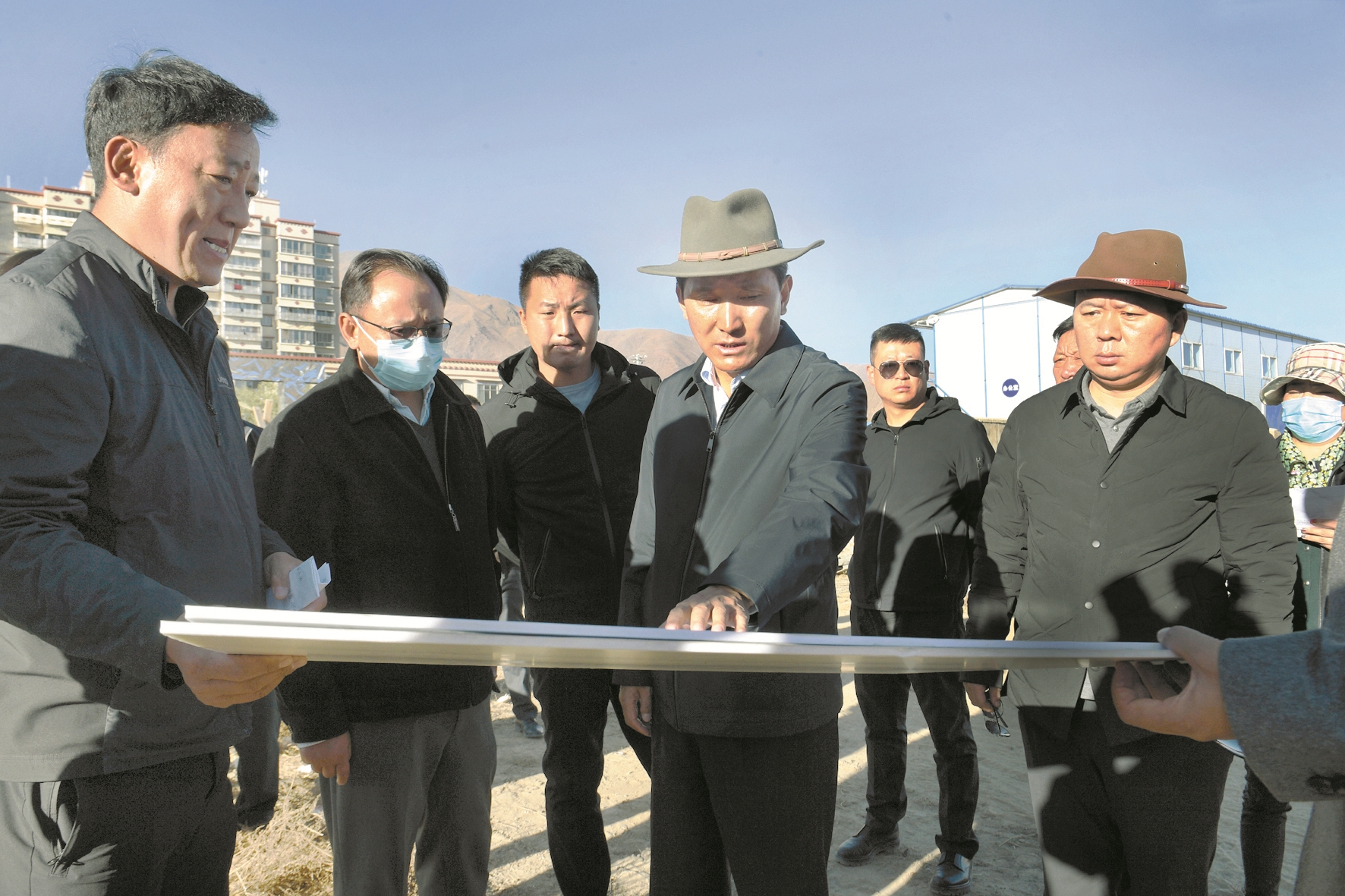 11月10日下午,市委副書記、市長果果實(shí)地調(diào)研納金水源地城市水系取水情況及我市固定資產(chǎn)投資、重點(diǎn)項(xiàng)目推進(jìn)情況。圖為果果詳細(xì)了解拉薩城投房地產(chǎn)項(xiàng)目建設(shè)情況。拉薩融媒記者 巴桑次仁攝