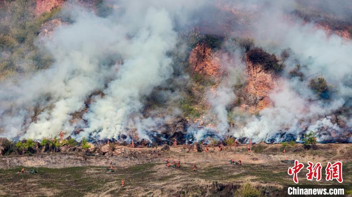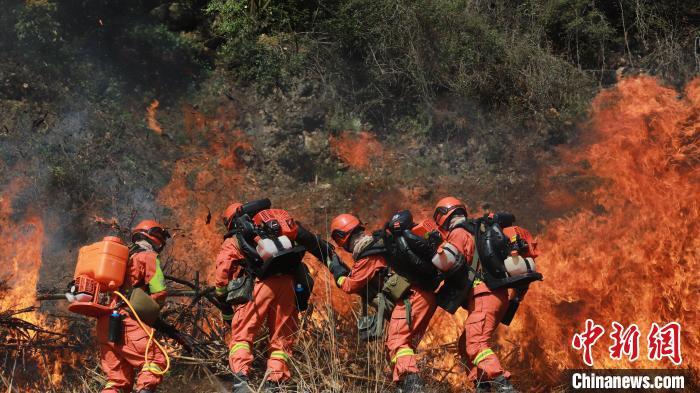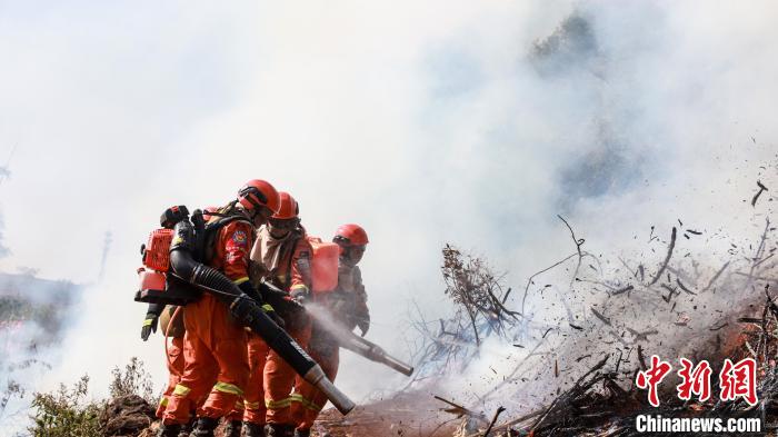 圖為3月2日,云南森林草原火災應急處置聯(lián)合實戰(zhàn)演練現(xiàn)場。 云南省森林消防總隊 攝