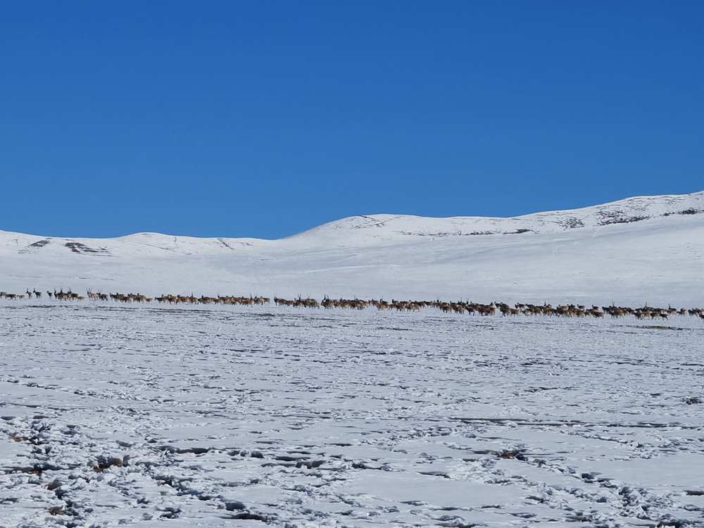 兩百余只藏野驢現(xiàn)身祁連山下