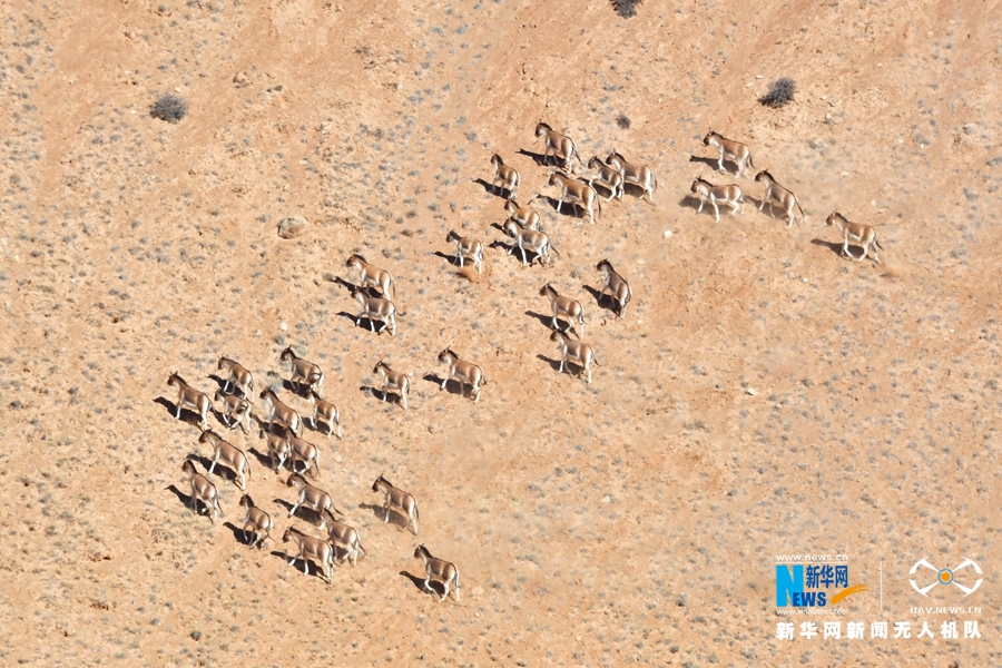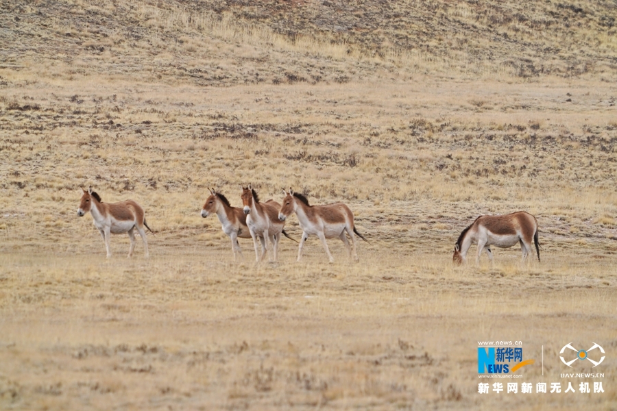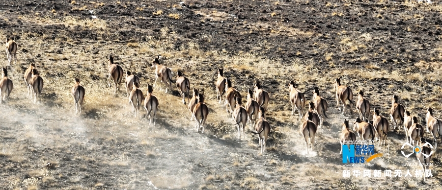 這是近日在甘肅省張掖市肅南裕固族自治縣祁豐藏族鄉(xiāng)禁牧區(qū)拍攝到的大種群藏野驢。新華網(wǎng)發(fā) 武雪峰 攝 飛手 安維斌