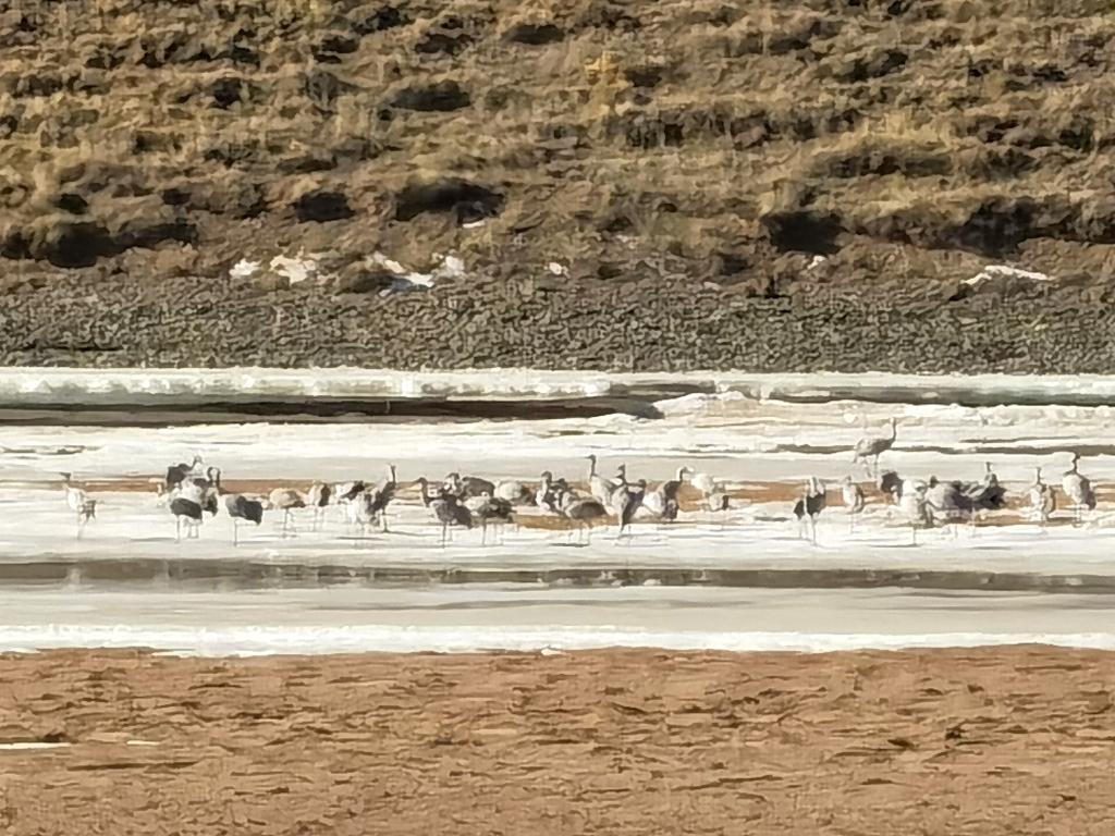 “現(xiàn)有衛(wèi)星追蹤數(shù)據(jù)顯示,蓑羽鶴連續(xù)飛行一兩天就可以穿越青藏高原,遇見(jiàn)中途停歇的蓑羽鶴群是十分罕見(jiàn)的。”青藏高原鳥(niǎo)類學(xué)研究專家李來(lái)興介紹,蓑羽鶴屬大型涉禽,是國(guó)家二級(jí)保護(hù)動(dòng)物,在青藏高原較為罕見(jiàn)。