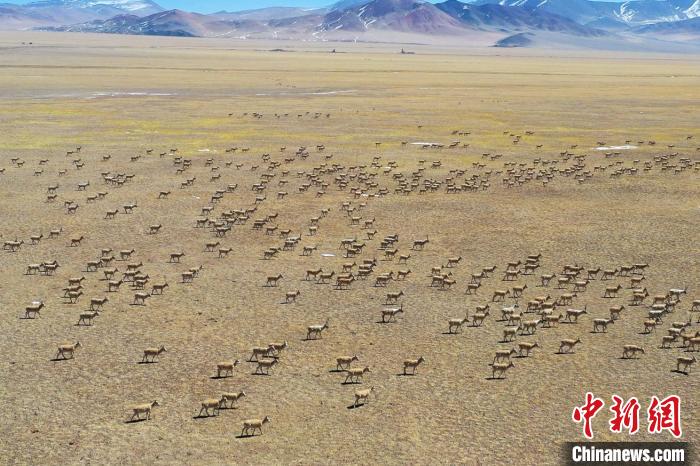 圖為3月27日,西藏阿里改則縣的藏羚羊群?!∵叞汀z