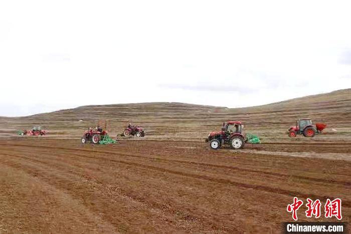 圖為同仁市黃乃亥鄉(xiāng)正在機械化種植黑青稞。 天津援青指揮部供圖