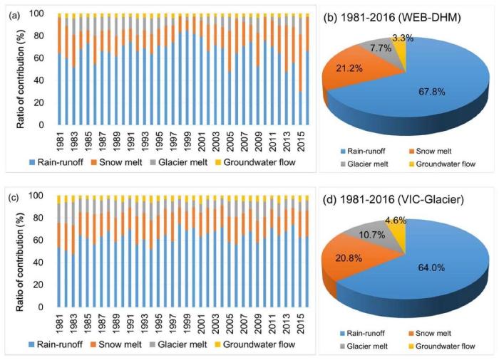 王磊表示,依托監(jiān)測(cè)網(wǎng)絡(luò)和其他多源數(shù)據(jù),研究團(tuán)隊(duì)生成了1981-2019年這38年內(nèi)雅魯藏布江流域高時(shí)空分辨率降水?dāng)?shù)據(jù),在此基礎(chǔ)上進(jìn)一步通過對(duì)比、綜合主流冰凍圈水文模型的徑流組分模擬,研究得出的結(jié)果顯示,雅魯藏布江流域(奴下水文站以上)新的降雨、融雪、冰川融化和地下水補(bǔ)給分別占總徑流的66%、21%、9%和4%。