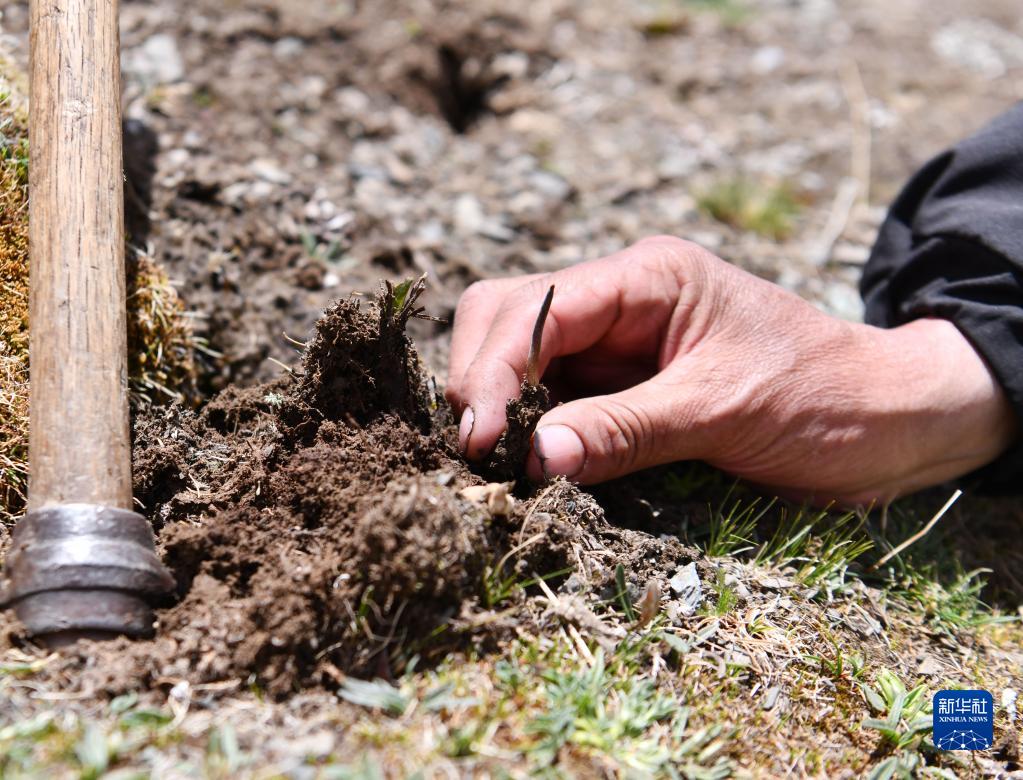 5月25日,牧民在采集蟲草。新華社記者 晉美多吉 攝