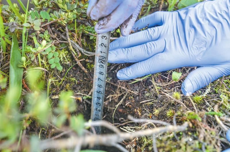 在一個個箱體內(nèi)外,王濤和博士生劉冬,固定出10厘米見方的樣方,向下整齊挖出20厘米的深度,將范圍內(nèi)的植被、土壤一網(wǎng)打盡。標(biāo)記、裝袋,帶回實驗室處理,測量出土壤中的碳含量。