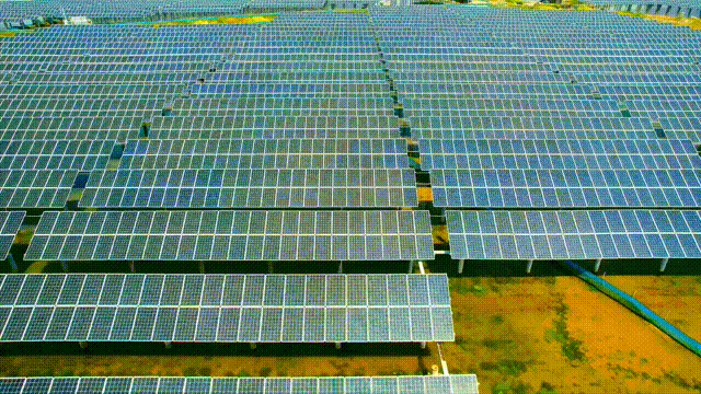 一排排光伏板呈矩陣排列