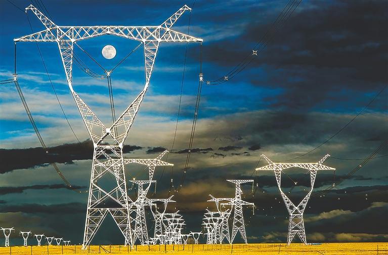 青藏、川藏、藏中、阿里電網(wǎng)聯(lián)網(wǎng),四條“電力天路”點亮西藏千家萬戶。2015年以來, 累計外送電量92億千瓦時。圖為“電力天路”鐵塔。