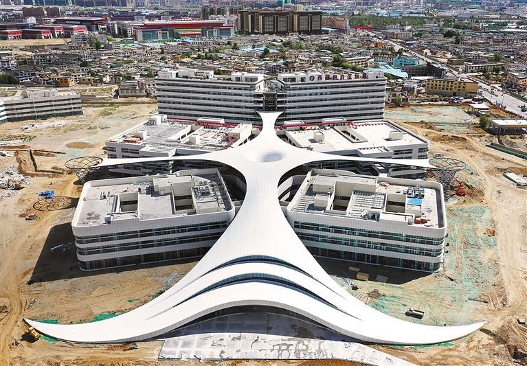 中央支持西藏自治區(qū)全面推進(jìn)就業(yè)、教育、醫(yī)療、住房等重大民生工程項目建設(shè)。圖為正在建設(shè)的西藏自治區(qū)醫(yī)院。