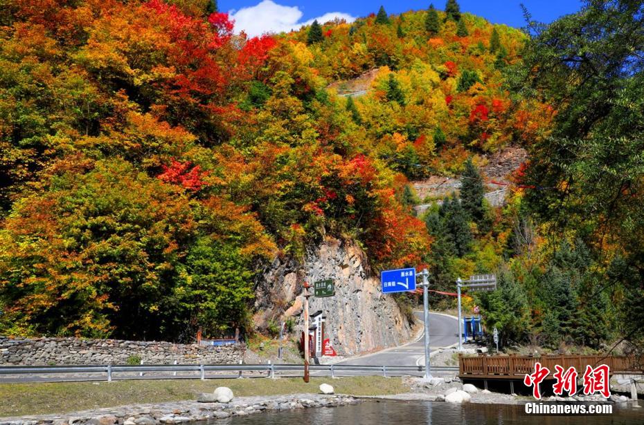 大紅、金黃、橙黃、墨綠、淺藍(lán)......秋意漸濃,輕風(fēng)把四川阿壩州黑水縣3000多平方公里的林濤樹海慢慢渲染,從谷底到山巔,千樹萬葉將躍動(dòng)的生命燃燒,留下最絢麗的身影,冰山彩林交相輝映;彩林湖泊浮光掠影,一派“樹樹皆秋色,山山似落暉”的壯美。黑水冰山彩林、卡龍溝彩林、奶子溝彩林等彩林區(qū)游覽面積達(dá)3000多平方公里,因面積大、色彩豐富而享有“亞洲之最”的美譽(yù)。圖為色彩斑斕的黑水彩林。 黑水縣委宣傳部 供圖