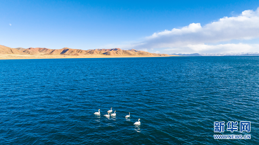 湖泊與遠(yuǎn)處的山峰交相輝映,景色壯觀。新華網(wǎng) 李友崇 攝