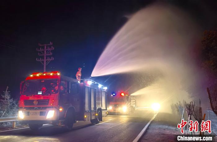 圖為森林消防員正在進(jìn)行灑水增濕作業(yè)。 林芝市森林消防供圖