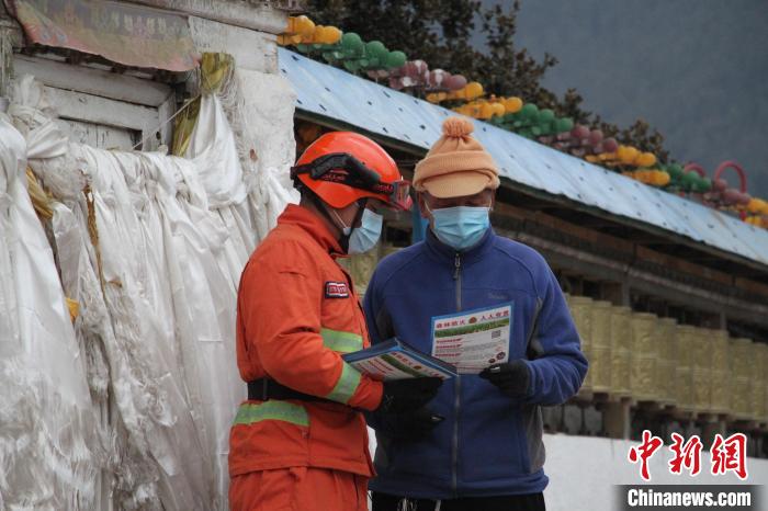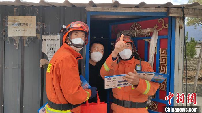 圖為森林消防員為駐地民眾科普防火知識(shí)。 林芝市森林消防供圖