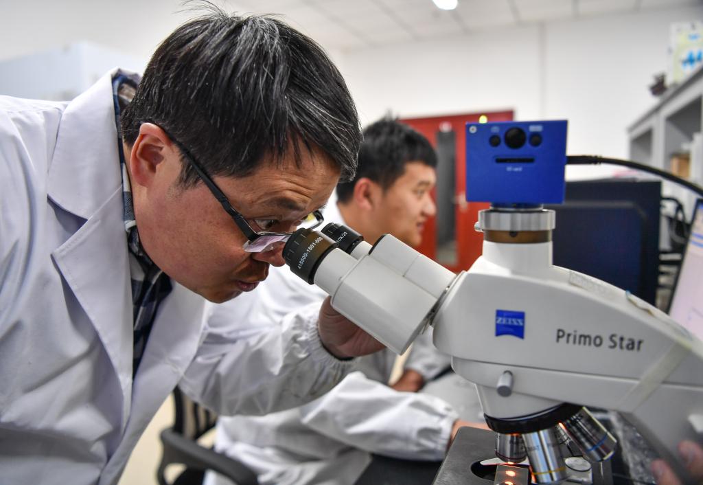 在西藏高原生物研究所,楊樂在實(shí)驗(yàn)室中觀察動物標(biāo)本(3月2日攝)。新華社記者 晉美多吉 攝