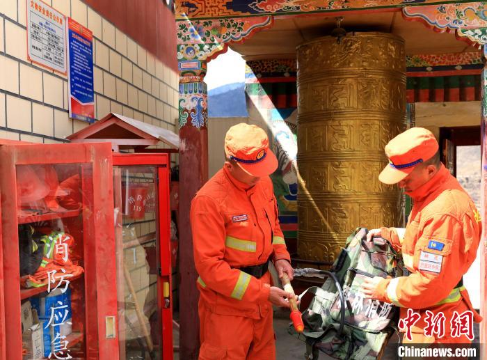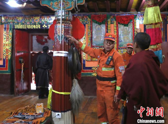 森林消防隊員正在排查寺廟火災(zāi)隱患。 西繞拉翁 攝