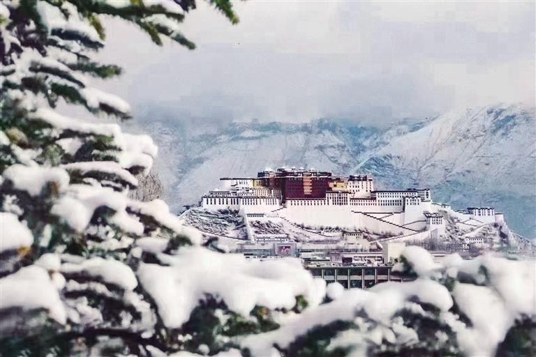 3月28日清晨,拉薩市區(qū)迎來一場降雪。近處的綠柳、紅花、一池春水,遠(yuǎn)處的布達(dá)拉宮,白雪掩映下的拉薩更顯古樸厚重。雪簌簌地落在屋檐、路面、樹干、花枝上,側(cè)耳傾聽,正是雪落下的聲音。