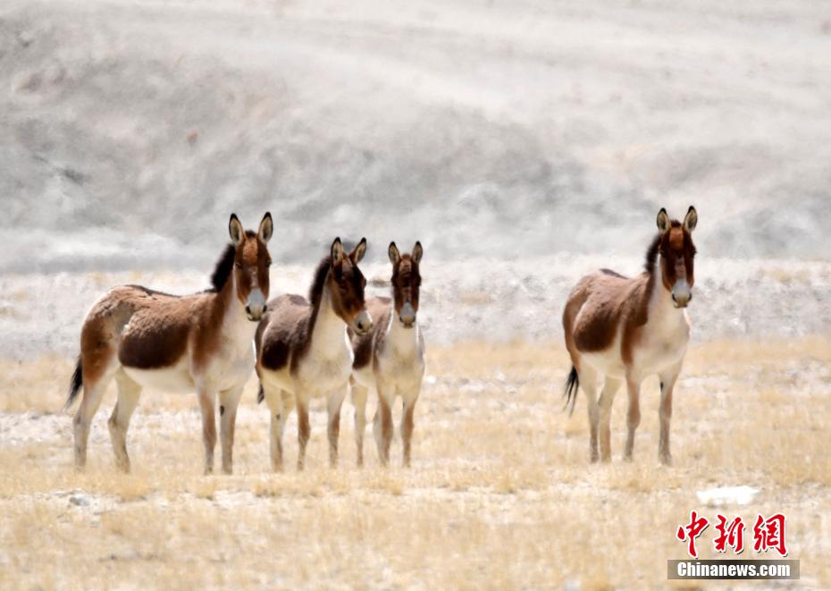 4月10日,西藏阿里地區(qū)札達縣拍攝到的藏野驢。藏野驢為國家一級重點保護動物、青藏高原特有物種。藏野驢是我國野驢中體型最大的一種,外形與蒙古野驢相似,但要比蒙古野驢大許多,而且性格也比蒙古野驢兇悍。它的四肢和身體下側(cè),包括頸下方白色,耳朵內(nèi)側(cè)和口鼻端也是白色。在背脊上,一條深色條紋從鬃毛處一直延伸到尾端,尾巴上有一簇黑色細(xì)絲狀的毛。近年來,隨著西藏生態(tài)保護力度不斷加大,藏野驢等多種野生動物頻頻亮相。