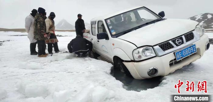圖為巡護(hù)車(chē)輛陷車(chē)。 謝昆軍供圖