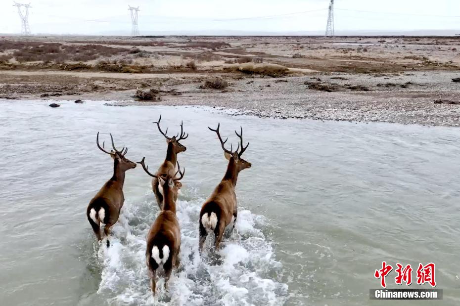 青海湖最大補(bǔ)給河畔馬鹿結(jié)伴“撒歡”