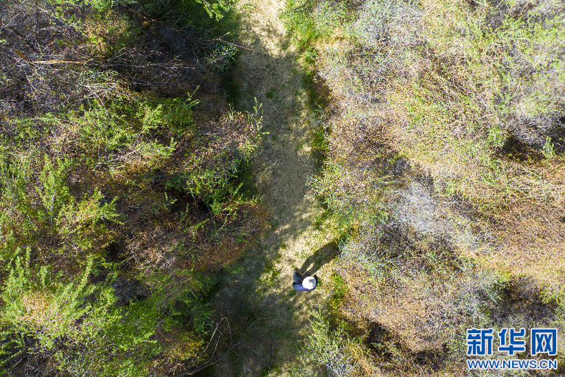 6月8日,索朗拉杰在沙棘林里(無人機照片)。新華網(wǎng) 旦增努布 攝