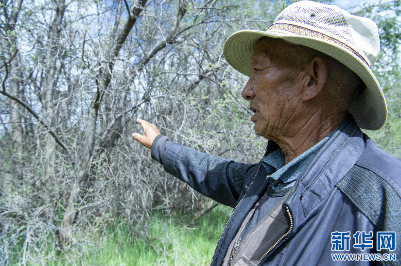6月8日,索朗拉杰在介紹20多年前種的沙棘。新華網(wǎng) 旦增努布 攝