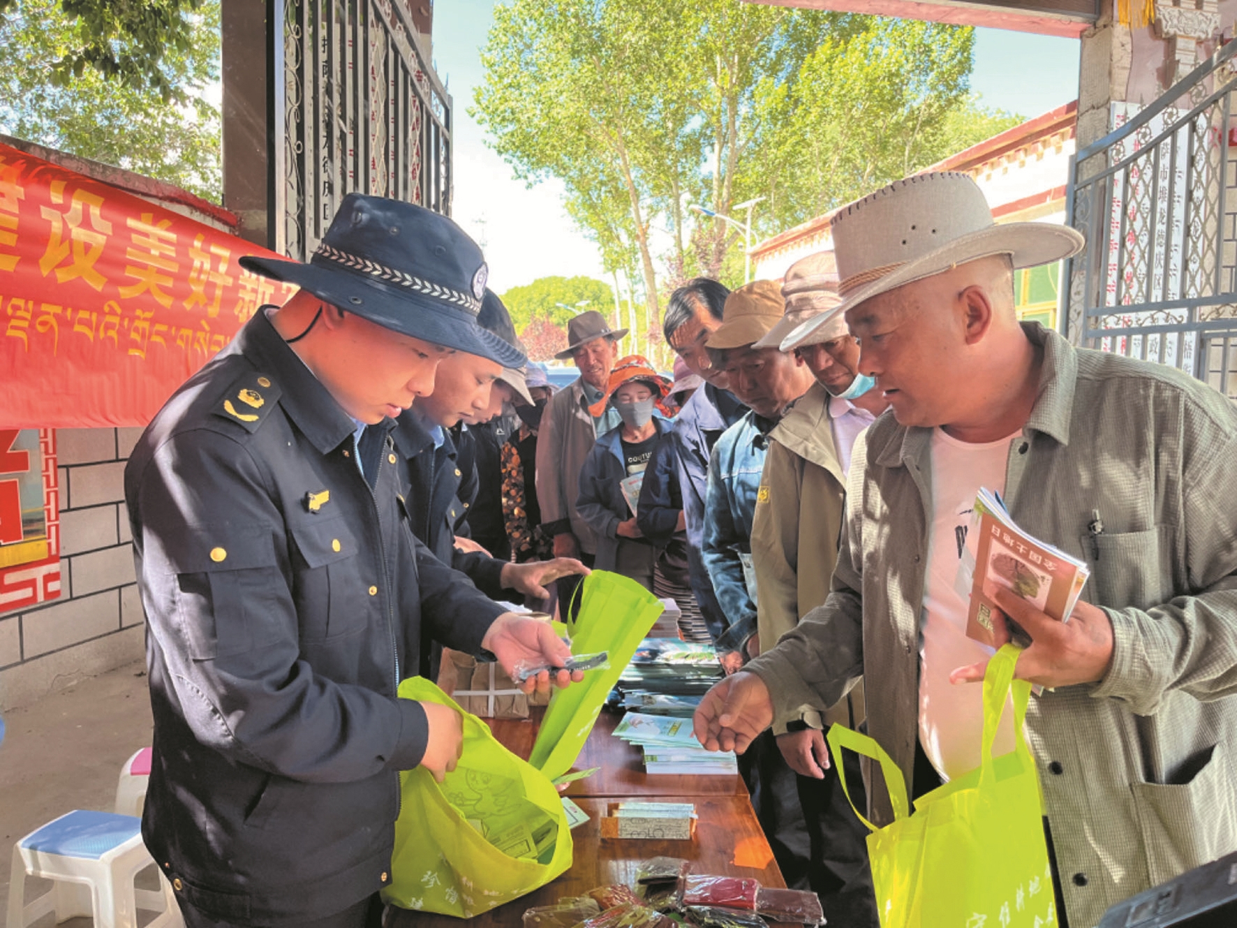 圖為活動現(xiàn)場,工作人員向過往市民發(fā)放宣傳資料。 拉薩融媒記者 莫瑞英攝