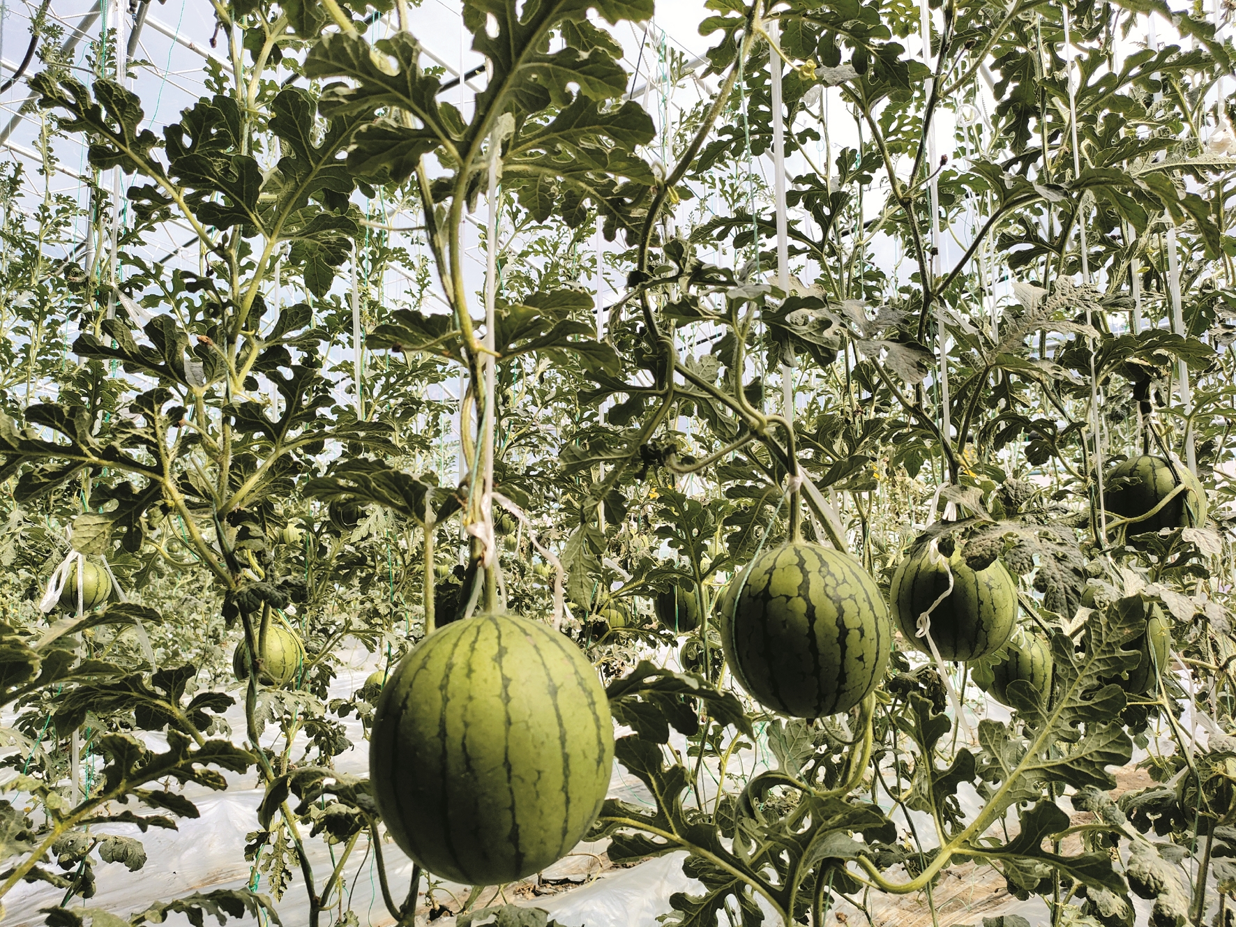 圖為園區(qū)大棚內(nèi)西瓜長(zhǎng)勢(shì)喜人。 拉薩融媒記者 李從芳攝