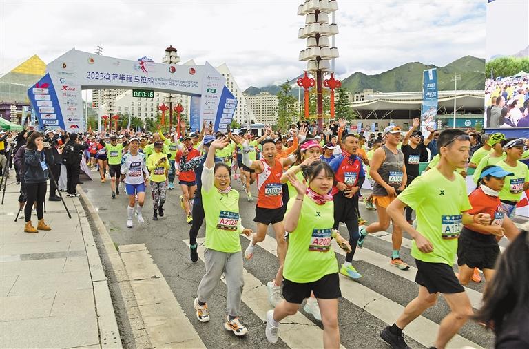 8月27日,2023拉薩半程馬拉松在拉薩市鳴槍開跑。賽事設(shè)置半程馬拉松、競速跑(10.520公里)、健康跑(5公里)三個組別。來自全國各地的約4000名馬拉松愛好者參加比賽。經(jīng)過激烈角逐,索朗才仁和次仁措姆分別以1小時10分3秒和1小時23分48秒的成績撞線,雙雙衛(wèi)冕男、女子組半程馬拉松冠軍。