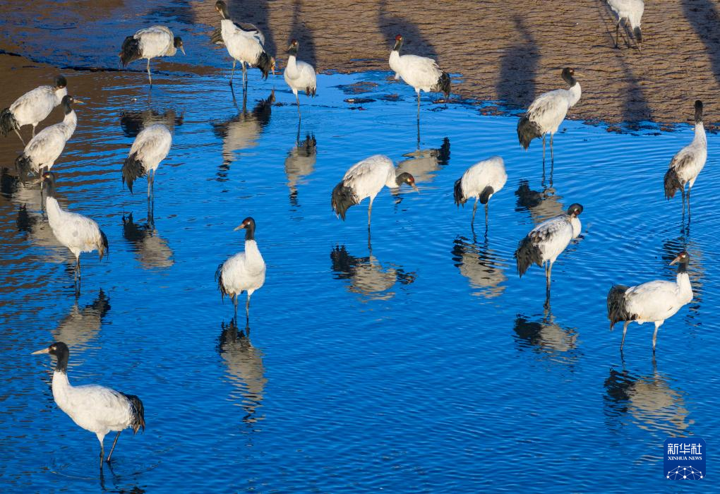 10月23日,成群的黑頸鶴在拉薩市當(dāng)雄縣阿熱濕地內(nèi)覓食。黑頸鶴是全球十五種鶴類中,唯一在高原地區(qū)繁殖和越冬的鶴類,屬中國國家一級保護野生動物。 [詳細(xì)] -