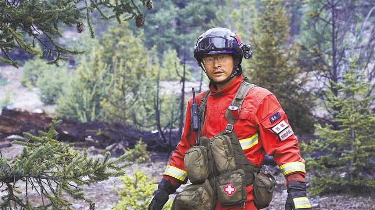 2020年的一天,林芝市突發(fā)一起森林火災(zāi)。3000多米的海拔,平均70度的坡度,還要背著幾十公斤的裝備,一個(gè)個(gè)不利因素都在考驗(yàn)著李渡和他的隊(duì)友們。面對困難和危險(xiǎn),身為分隊(duì)長的李渡主動(dòng)請纓,要求第一批徒步接近火場打開突破口。李渡背上管帶、水泵,帶領(lǐng)著隊(duì)友們毅然走向火場。大火撲滅后,曾有人問他怕不怕?他說,怕是怕,但我們絕不能退,因?yàn)樯较掠刑嗥诖覀兒孟⒌娜嗣袢罕姟?/p>