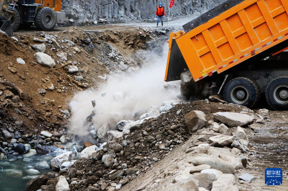 大唐扎拉水電站截流施工現(xiàn)場(1月3日攝)。新華社記者 關明輝 攝
