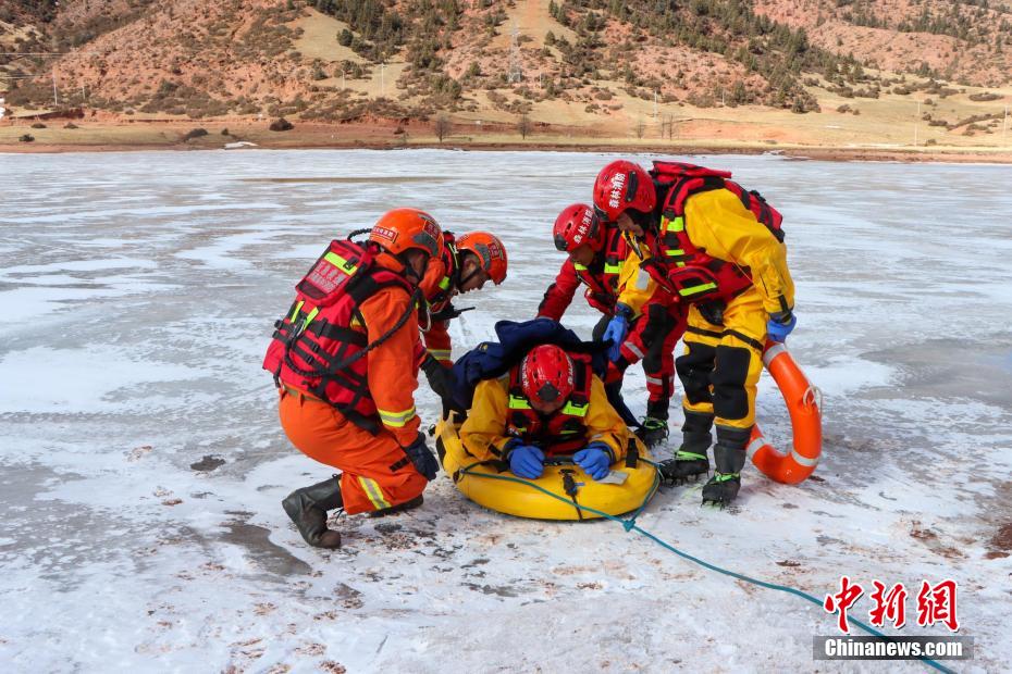 西藏芒康森林消防“爬冰臥雪”鍛煉冰面救援能力